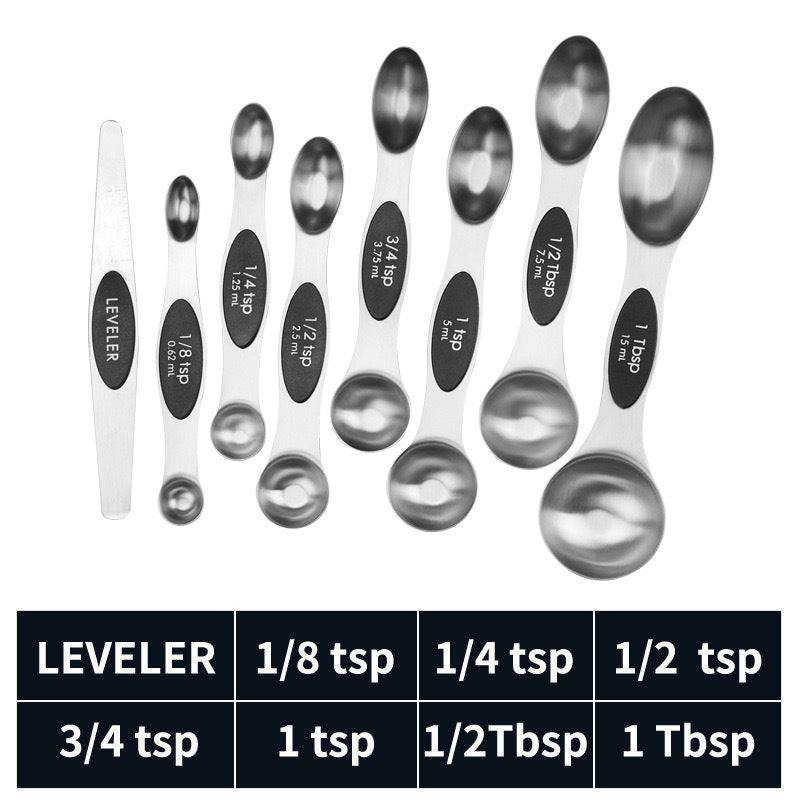 Stainless steel double headed magnetic suction spoon 8-piece set 9-piece set baking tool scale spoon set kitchen seasoning spoon